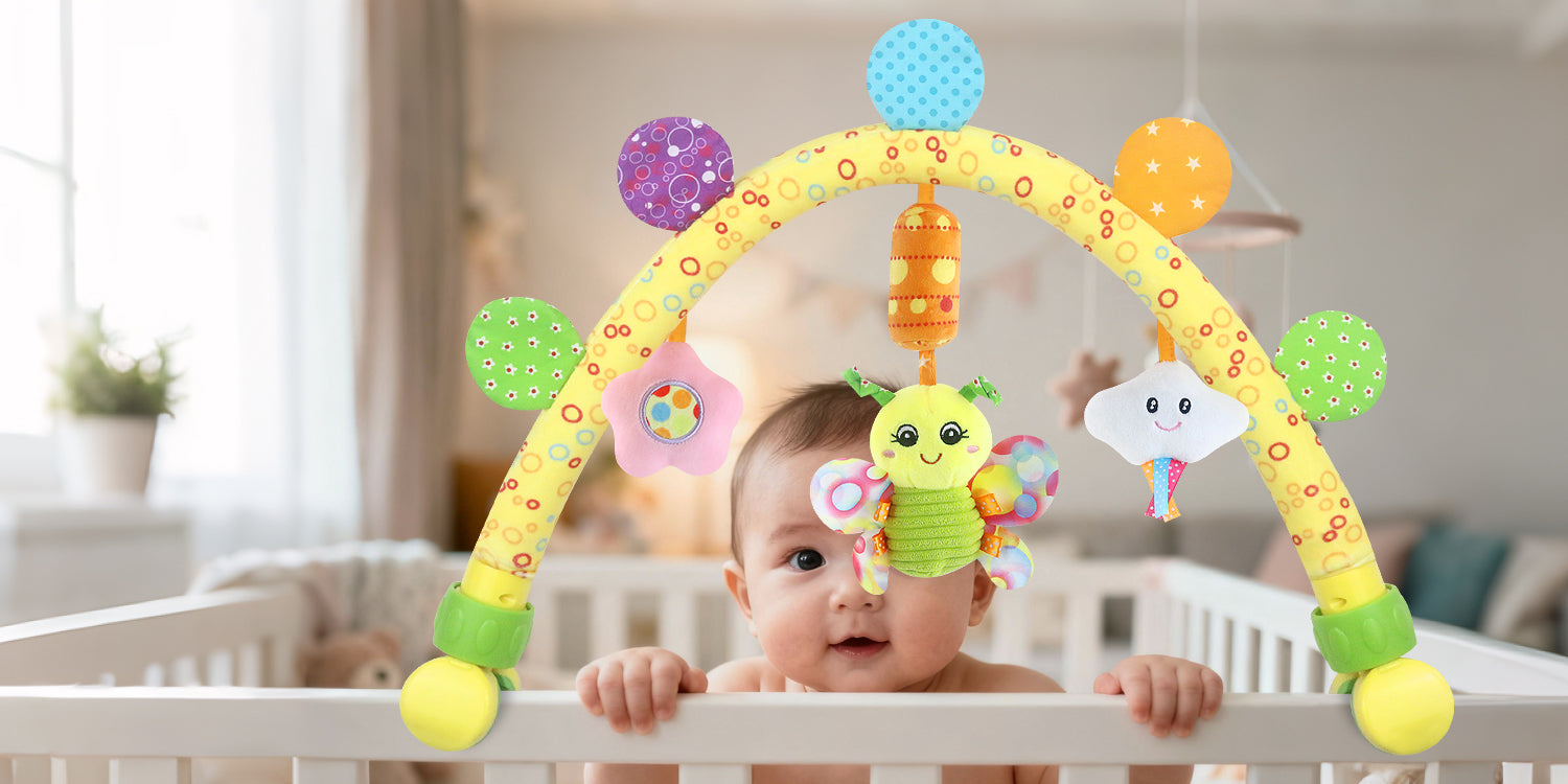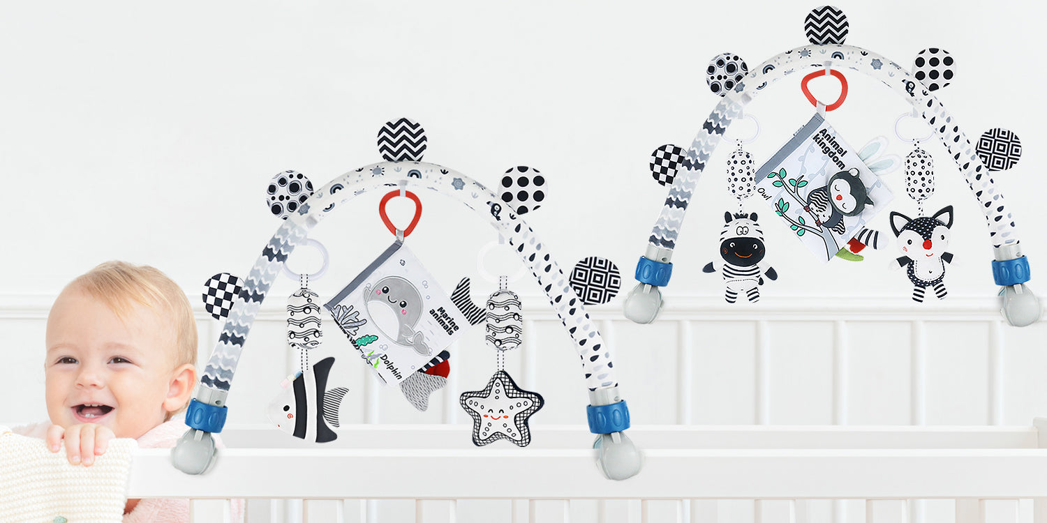 Baby Arch Toy Set Activity Stretch & Spiral Hanging toy with High-Contrast Black & White