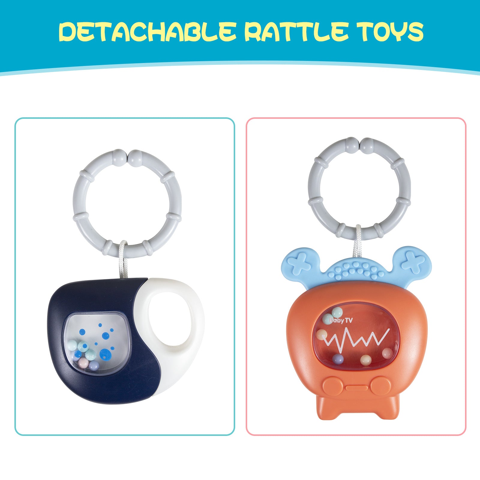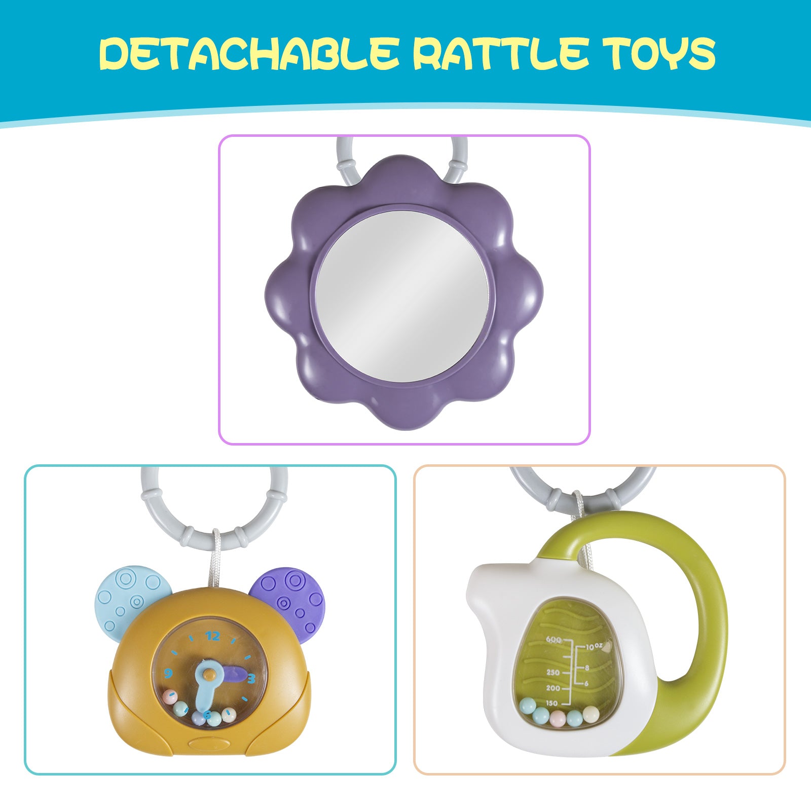 🧸 Engaging Hanging Toys: Comes with 5 colorful hanging toys, including a teether, mirror, and number toy, all designed to enhance hand-eye coordination and fine motor skills. The toys can be detached for independent play.