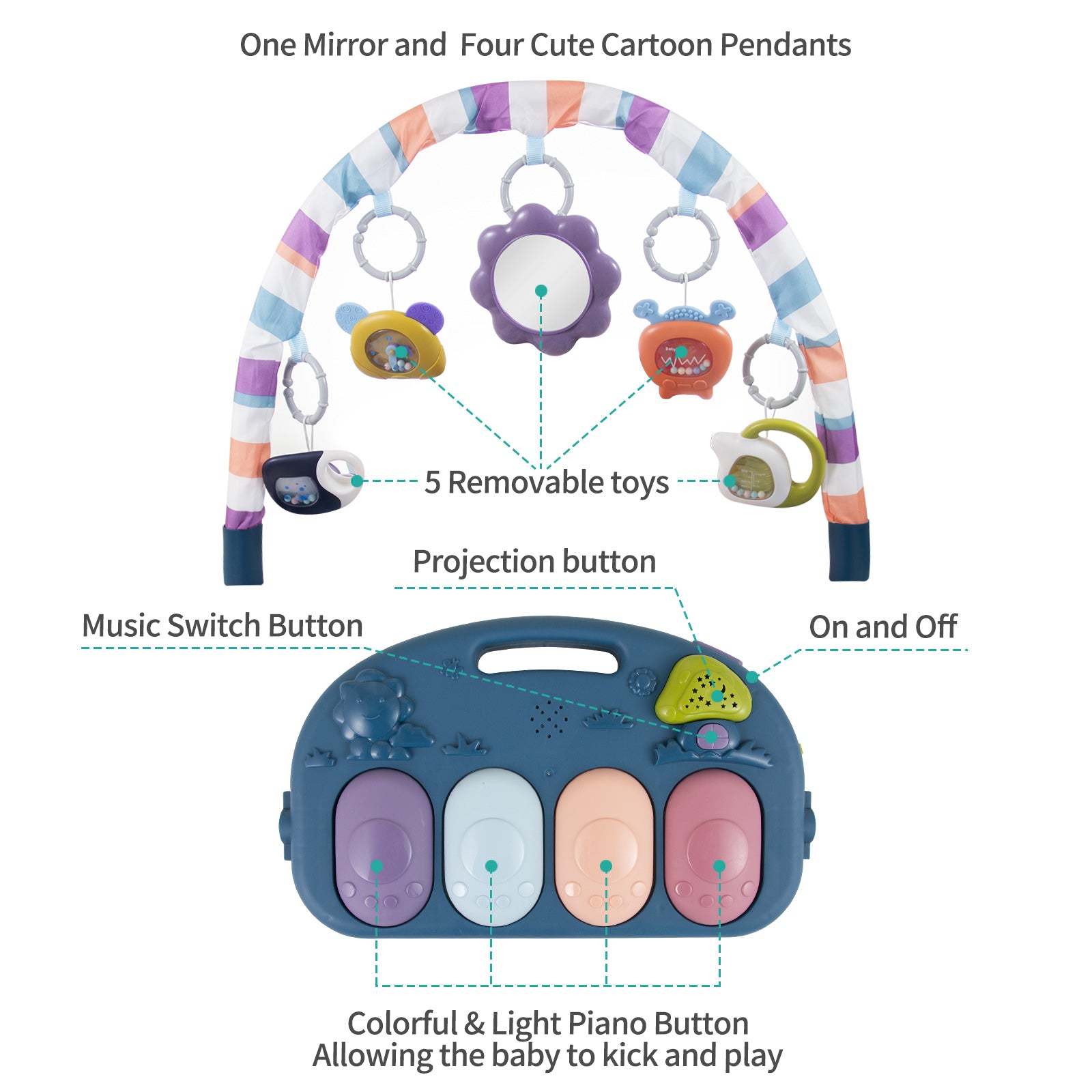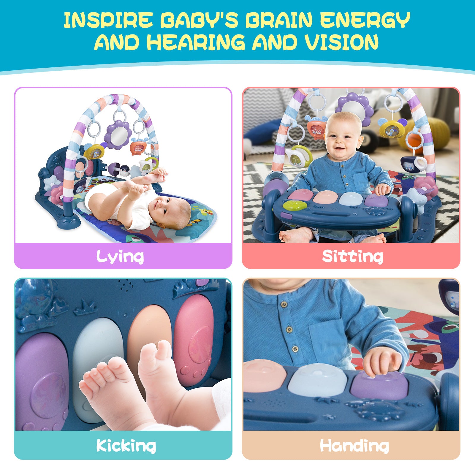 Baby Piano Play Mat Gym with Musical & Light – Interactive Kick & Play Activity Mat(Blue)