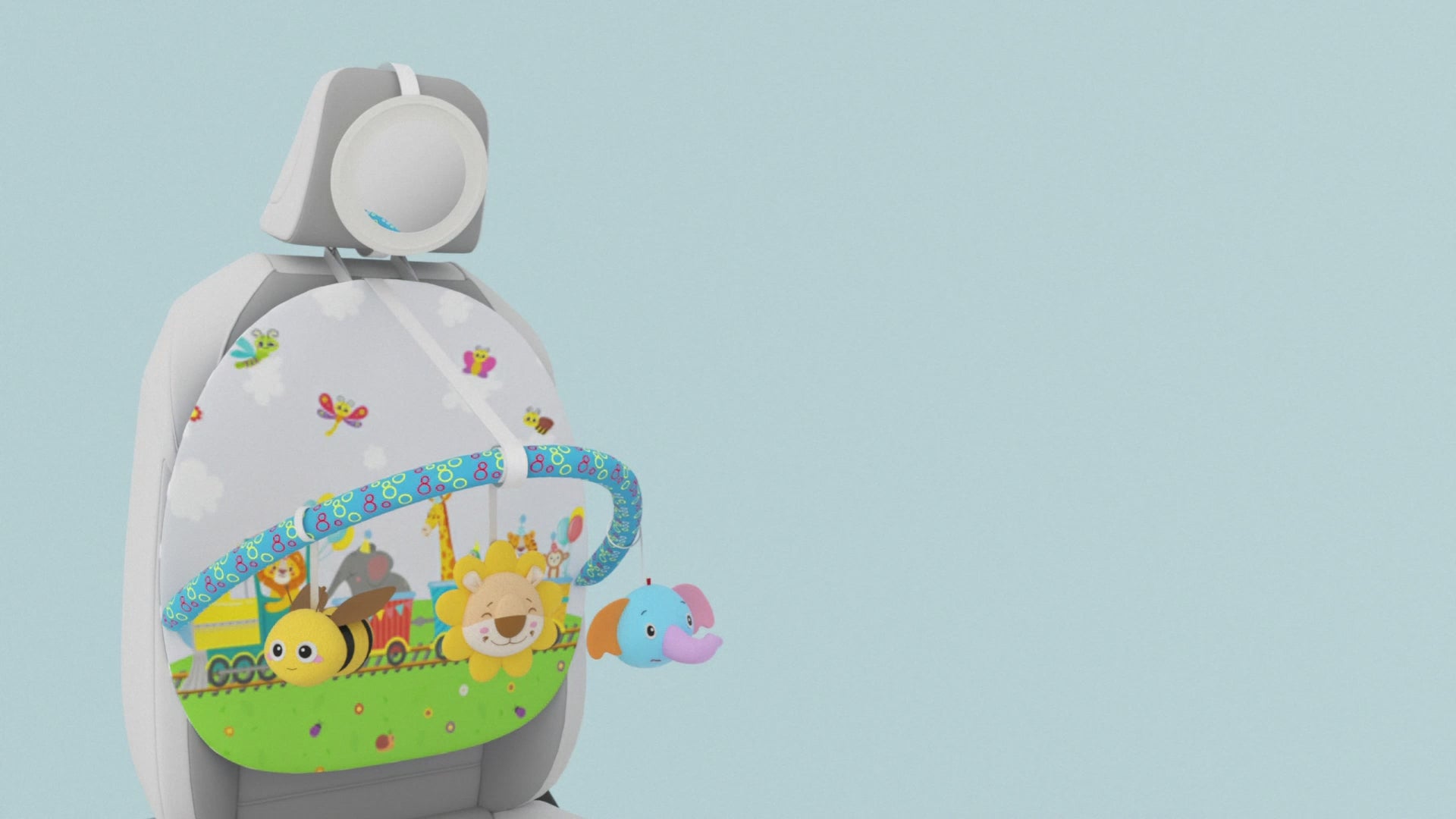 - Quick assembly – easily attaches to car seats with an adjustable lanyard.
