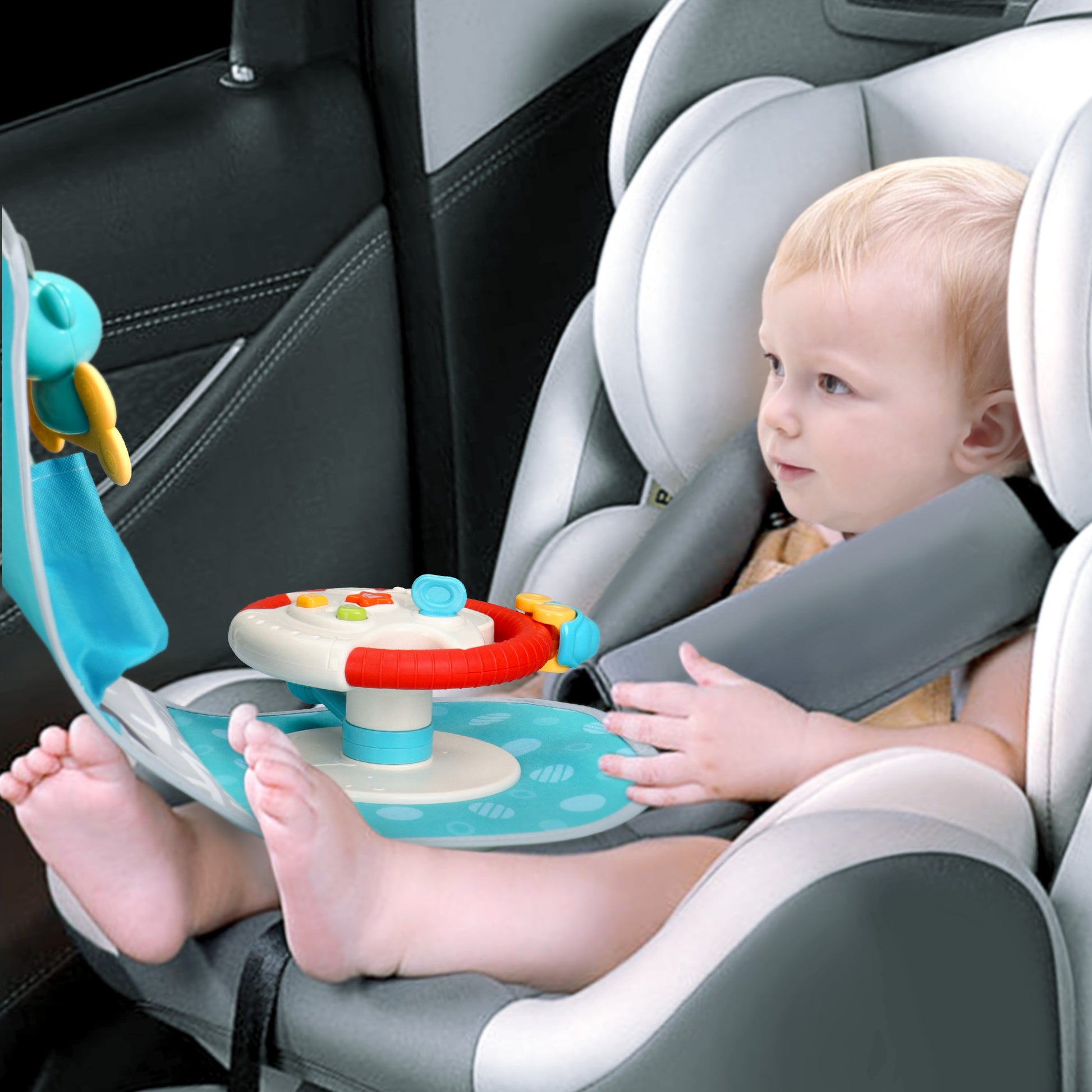 Caterbee Baby Car Seat Toy with Steering Wheel – Interactive Travel Play Center