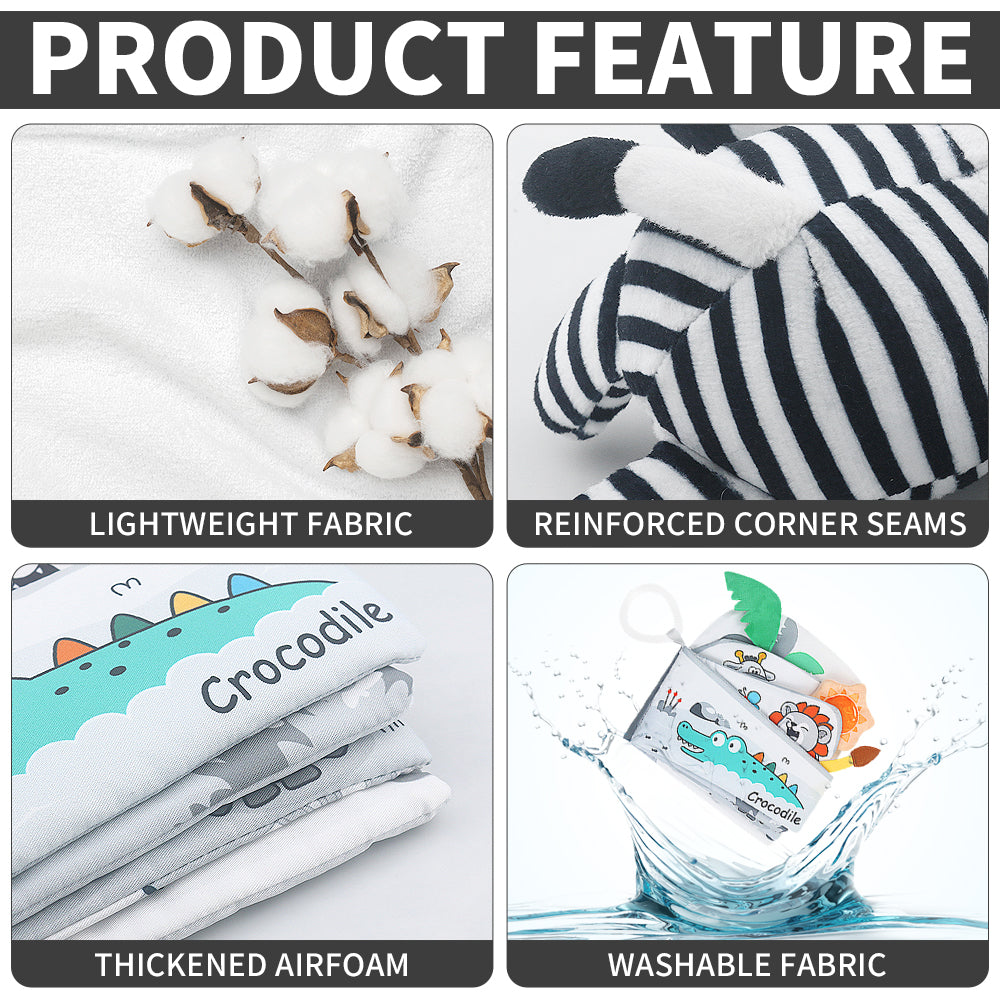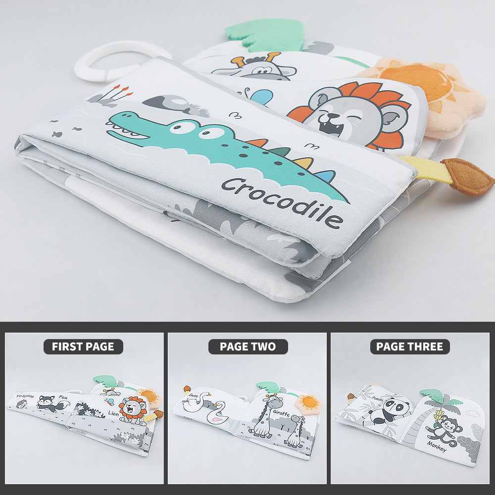 Comes with a sound-making soft book featuring cute animal designs—great for tummy time or solo play. Helps boost cognitive and sensory development.