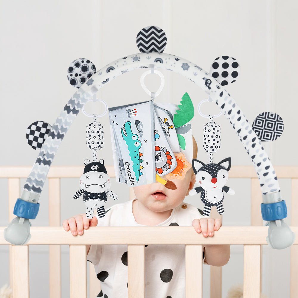 Looking for the perfect baby toy for on-the-go fun and early development? Our Black and White Baby Activity Arch is the must-have sensory toy bar for strollers, cribs, bassinets, playpens, and more!